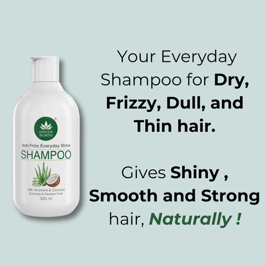 Green Worth Everyday Shine Anti-Frizz Shampoo for women and men | Sulphate Free | With Aloevera & Coconut | for dry damaged thin frizzy hair