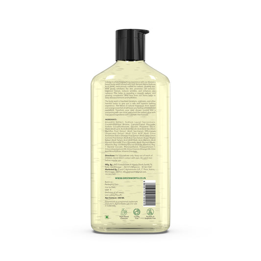 Green Worth Body Wash Shower Gel - With AHA | sulphate Free 300ml | Fresh Citrus Fragrance