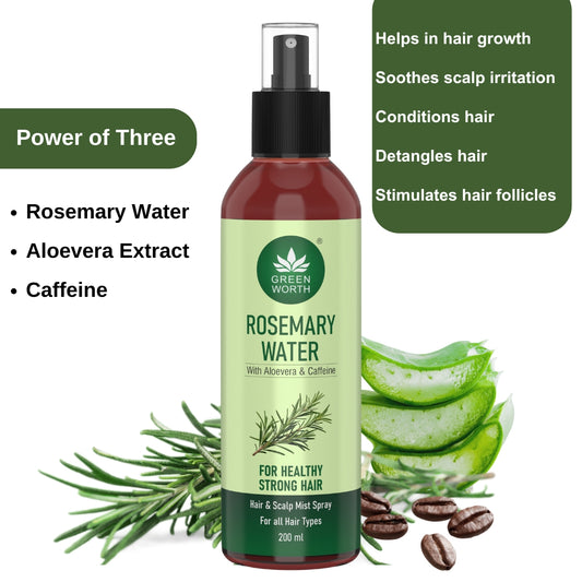 Green Worth Rosemary Water spray for Hair Growth | Goodness of Rosemary Aloe vera & caffiene (200 ml