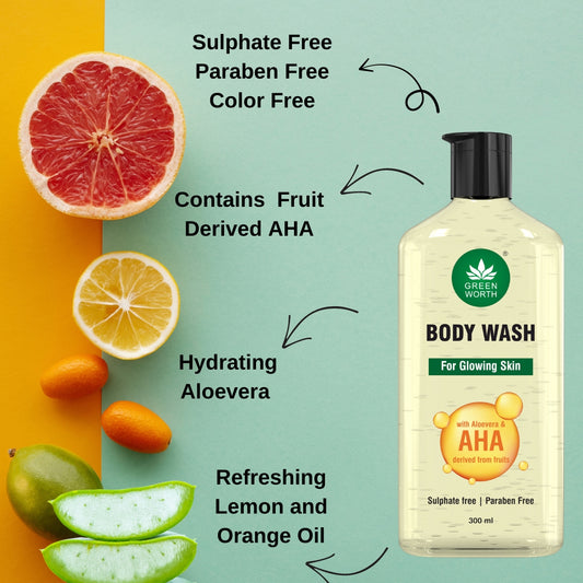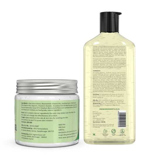Combo of Sulphate free Body wash with AHA & Aloevera (300ml) and Natural Aloevera Gel (200 Gm)